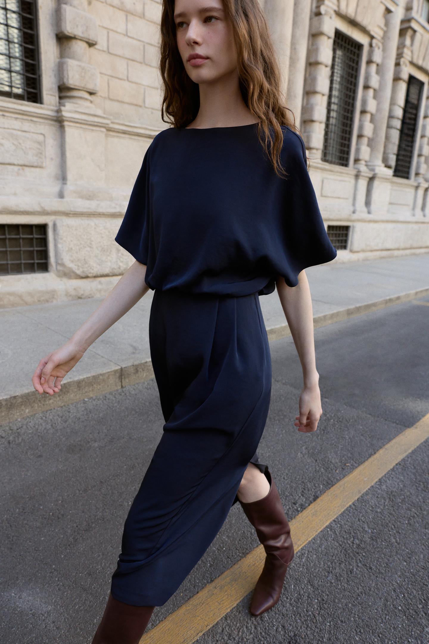 ROBE MIDI MANCHES DESCENDUES À PINCES