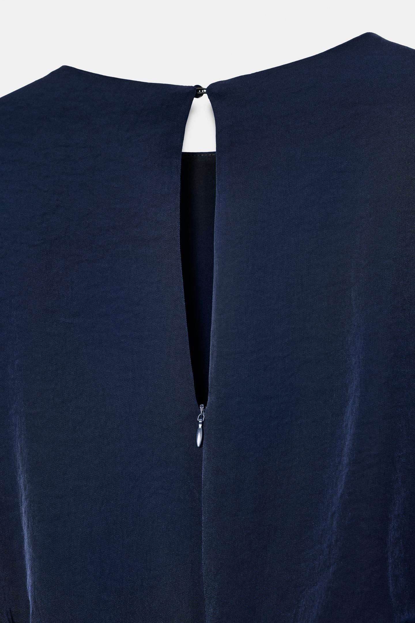 Ses manches tombantes dévoilent subtilement les épaules, tandis que les pinces ajustées mettent en valeur les formes avec élégance.